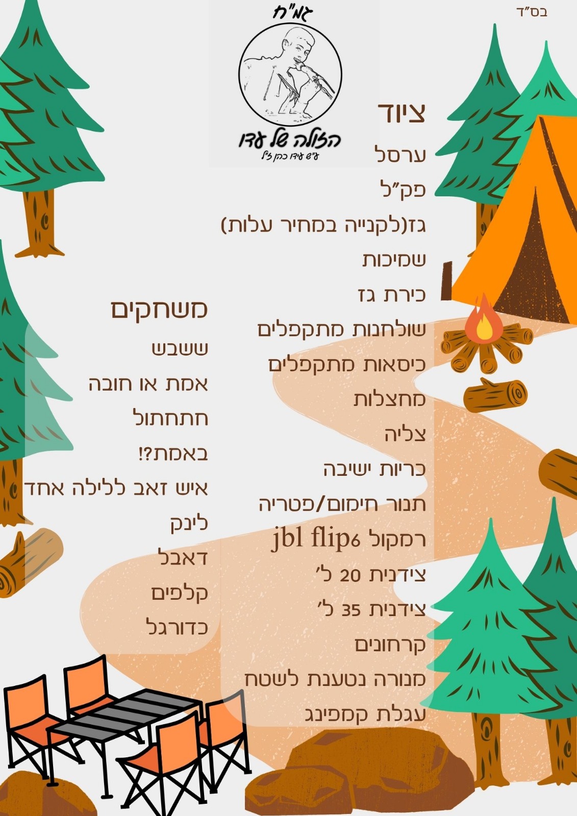 אנחנו פועלים ללא מטרות רווח, ומשאילים ציוד איכותי לקמפינג, ישיבות זולה, ערבי חברה, מפגשי טבע ועוד – מתוך אמונה שלכל אחד מגיע רגע של חיבור, מנוחה והנאה.